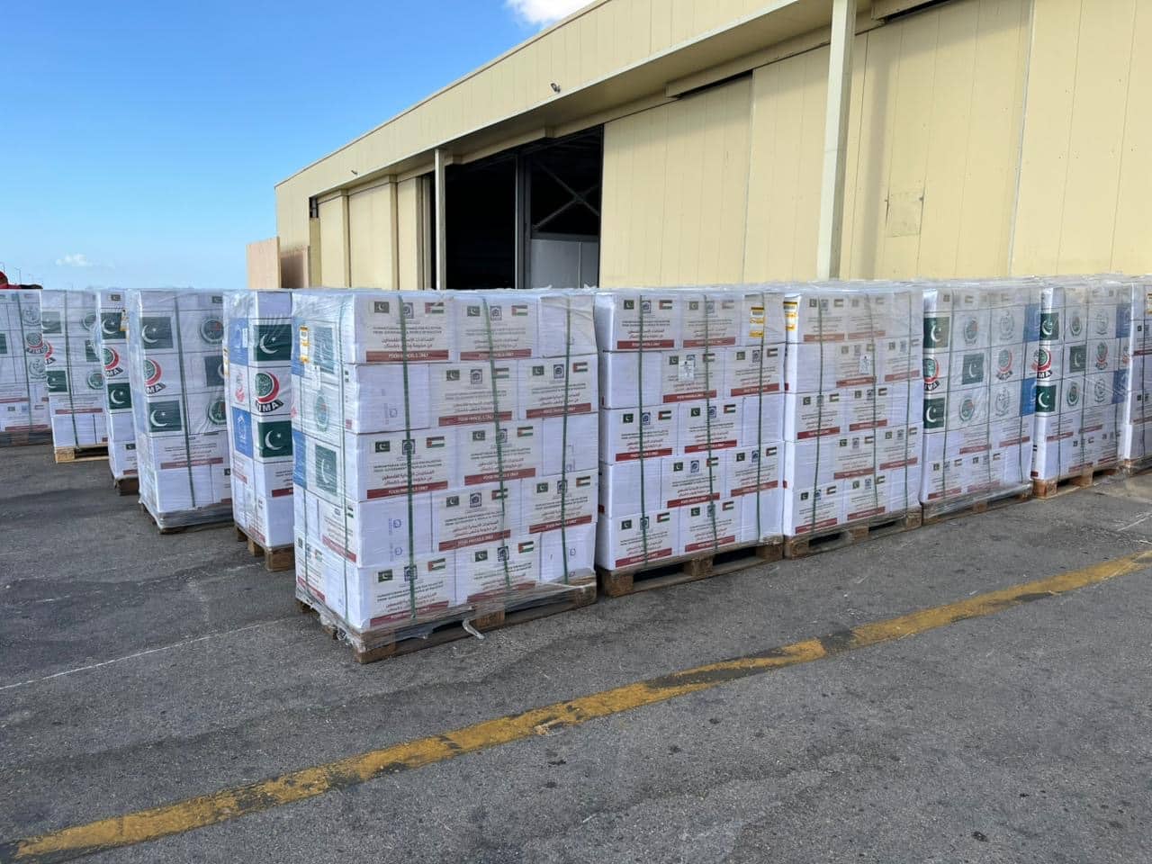 وصول الشحنة الخامسة من المساعدات الإنسانية الباكستانية لغزة ضمن الدفعة الحالية إلى مطار العريش الدولي